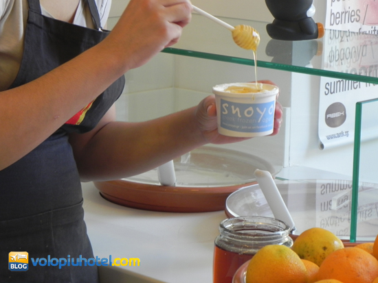 Ho anche provato quello tradizionale a Rodi e questo qui non si allontana poi tanto. Quello dello Snoyo l’ho provato ad Atene, e una sapiente mano ha condito il mio fresh yogurt con del miele, altro alimento tipico della Grecia, ed è stata davvero grandiosa come merenda e soprattutto rifocillante visto che fuori erano circa 40 gradi. Vi sarà possibile scegliere diversi gusti tra frutta fresca, granella di nocciola, noci, cioccolato in scaglie, frutta secca, scaglie di cocco, frutta esotica, zuccherini, e tantissimo altro, il tutto preparato davanti a voi. Il vero yogurt greco comunque è quello fresco, cremoso, quasi come una ricotta, un po’ acidulo ma cremoso quanto basta.